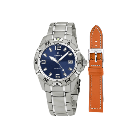COFFRET MONTRE ACIER HOMME + CUIR MARCD ROND FD AZUR