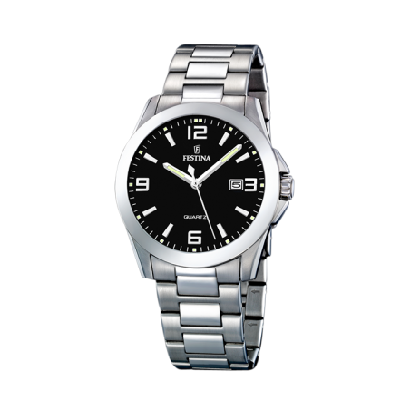 MONTRE HOMME ACIER CADRAN ROND FD NOIR + DATEUR