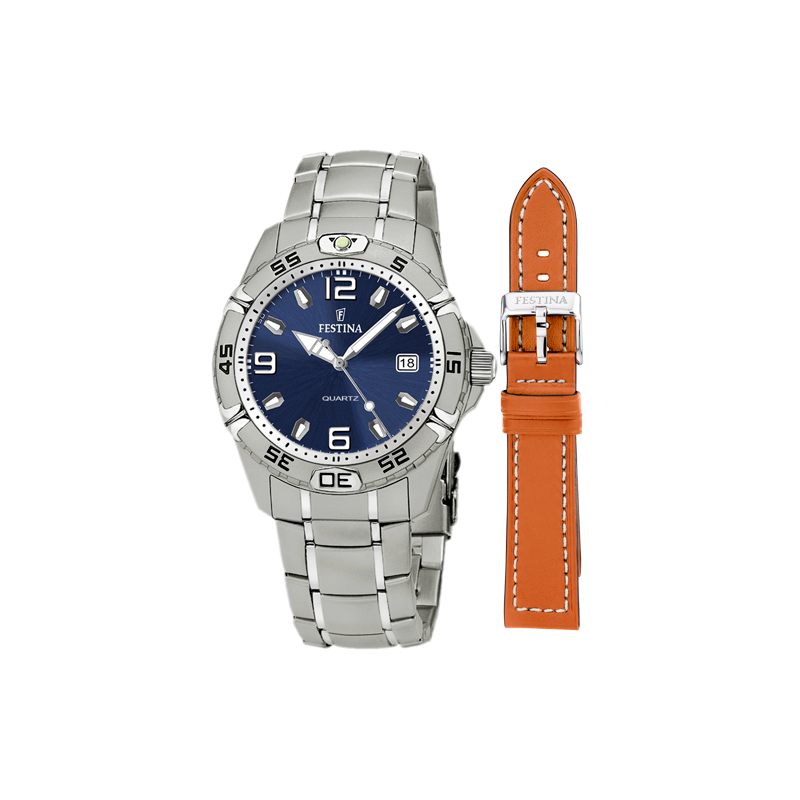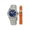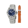 COFFRET MONTRE ACIER HOMME + CUIR MARCD ROND FD AZUR