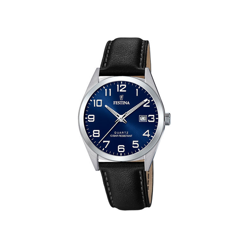 MONTRE HOMME CUIR NOIR CDR BLEU TT CHIFFRES